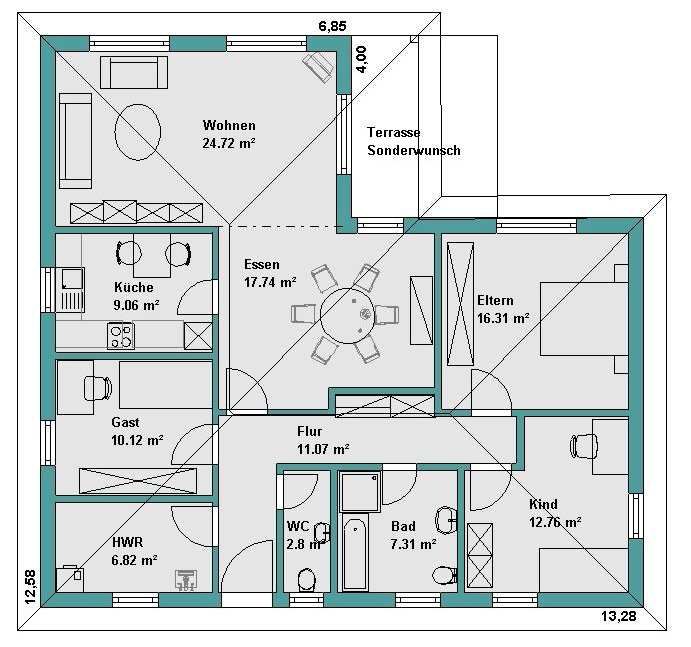Mit 118 m² Wohnfläche bietet der Grundriss vielfältige Nutzungsmöglichkeiten: