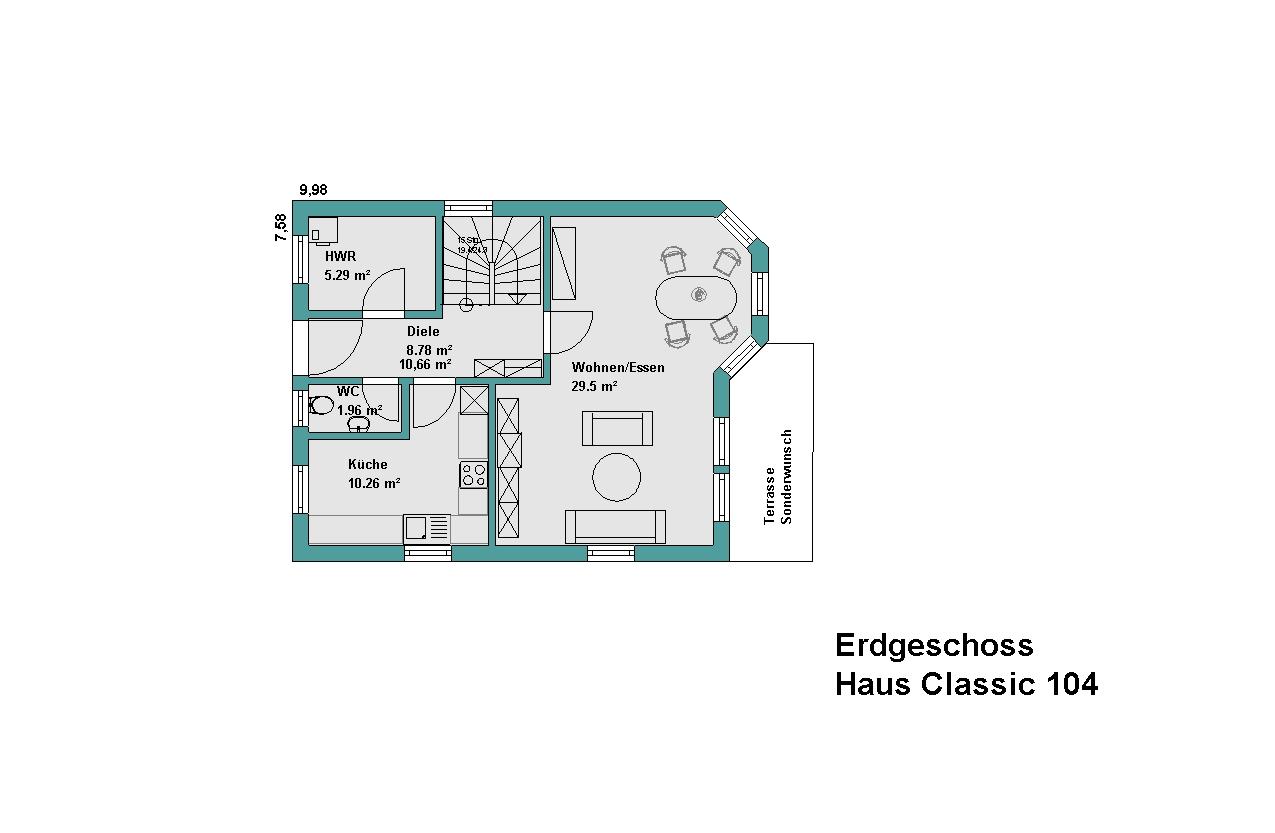 Mit dem SP – Classic 104 wird der Traum vom Eigenheim Wirklichkeit – ideal für Paare oder junge Familien, die Wert auf clevere Planung und ein gemütliches Zuhause legen.