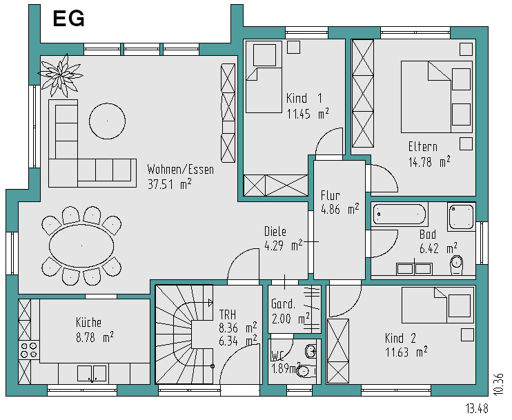 EG DIN-Wohnfläche: 109,95 m²