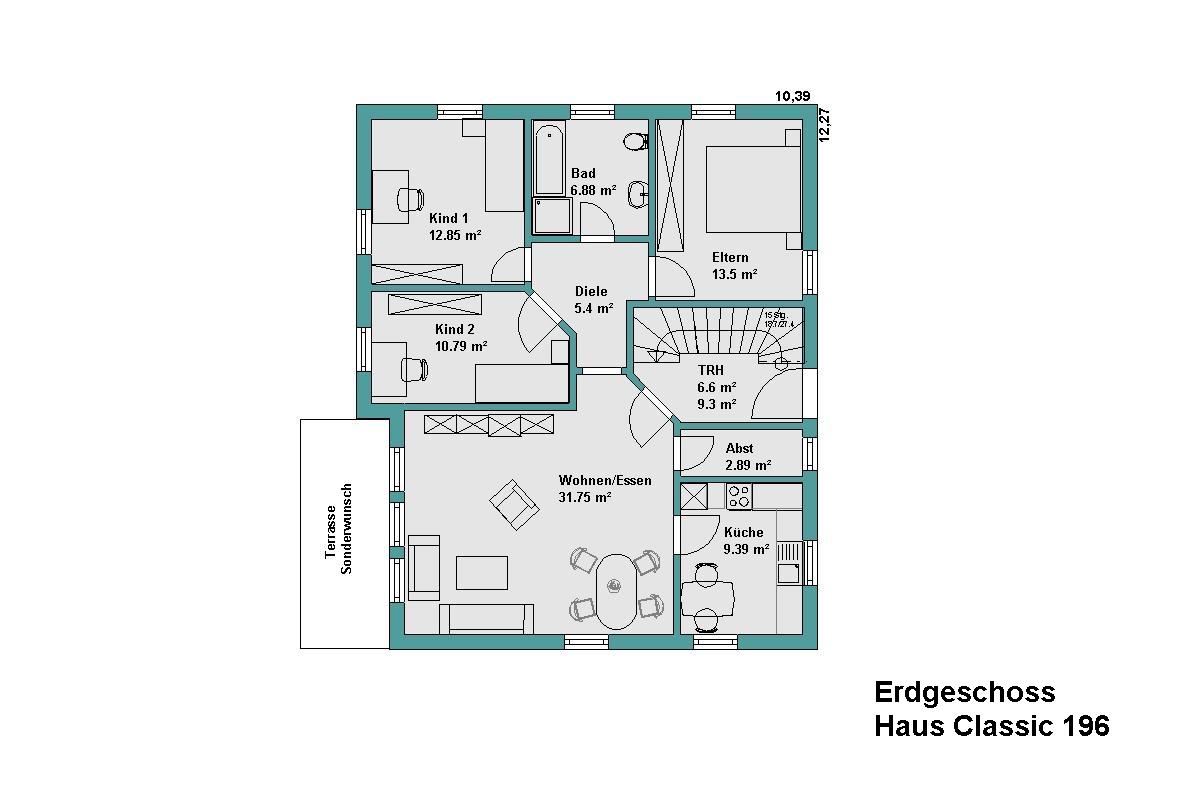 Außenmaße ca. 12,27 x 10,39 m